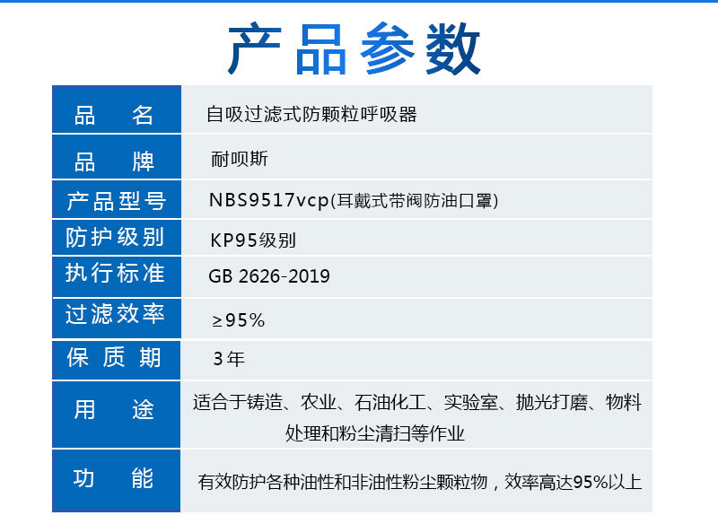 耐呗斯头戴式防护透气防工业粉尘防飞沫防尘口罩NBS9502