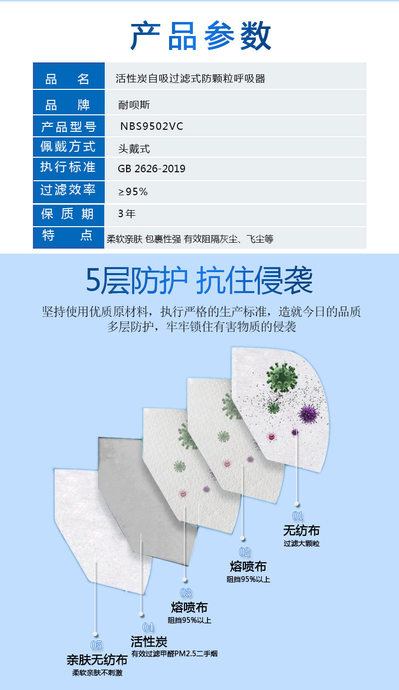 NBS9502C折叠头戴无阀活性炭防异味口罩