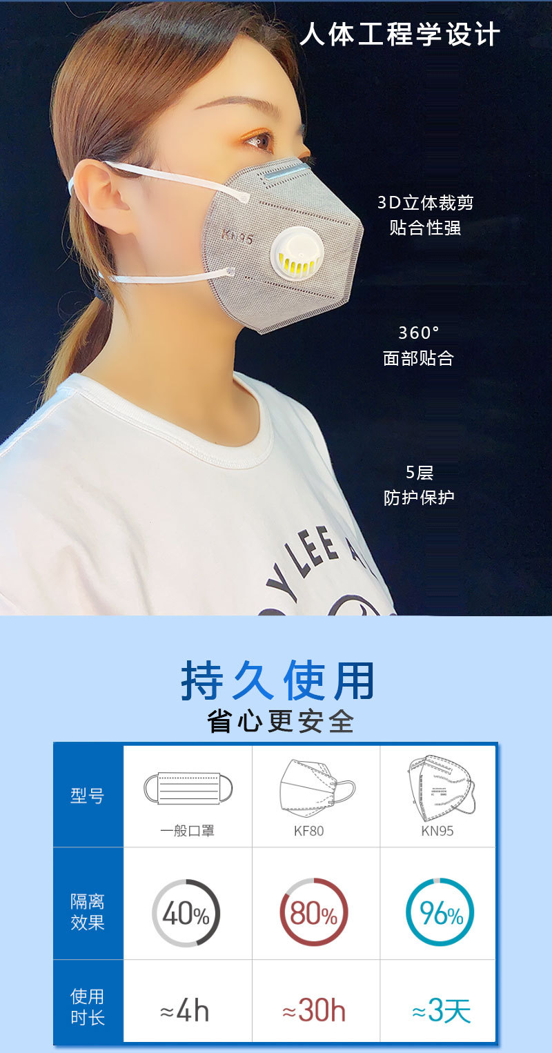 耐呗斯箱装KN95杯型头戴式活性炭无阀透气防尘防雾霾防护透气口罩