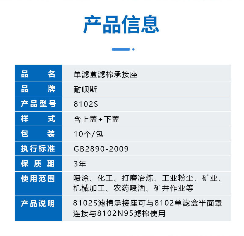 耐呗斯NBS8102N95单滤盒颗粒物过滤棉KN95适配8102面罩系列