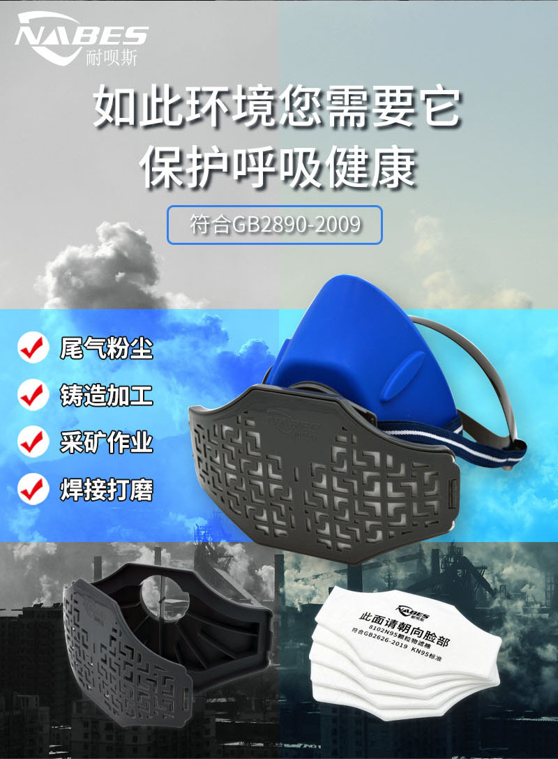 耐呗斯NBS8102食品级液态硅胶不沾灰椰壳碳单滤盒半面罩主体