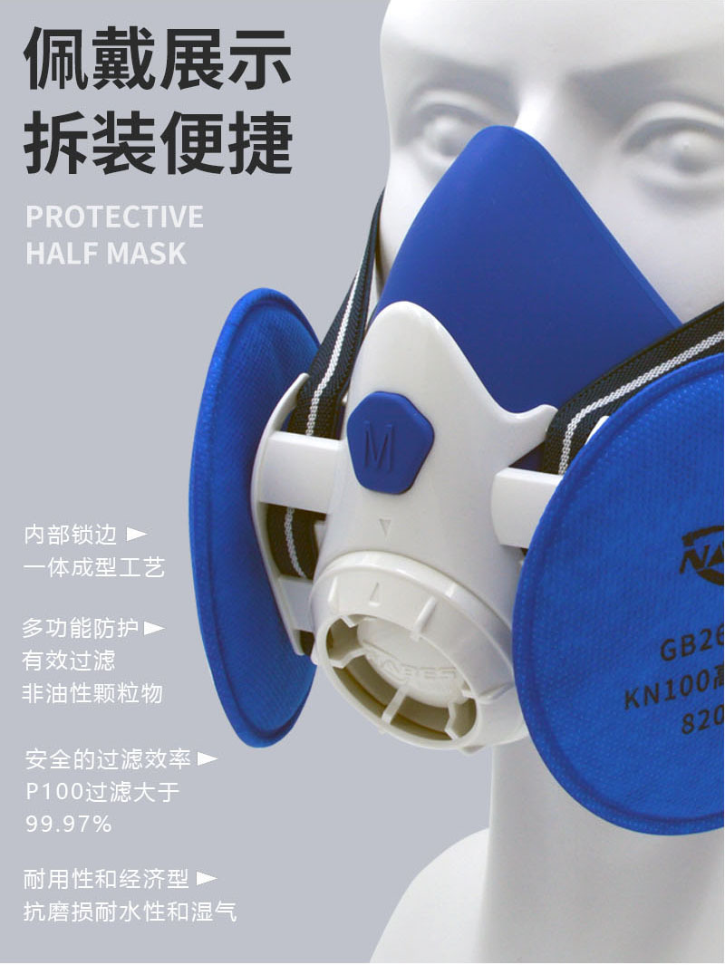 耐呗斯NBS8102食品级液态硅胶不沾灰椰壳碳单滤盒半面罩主体