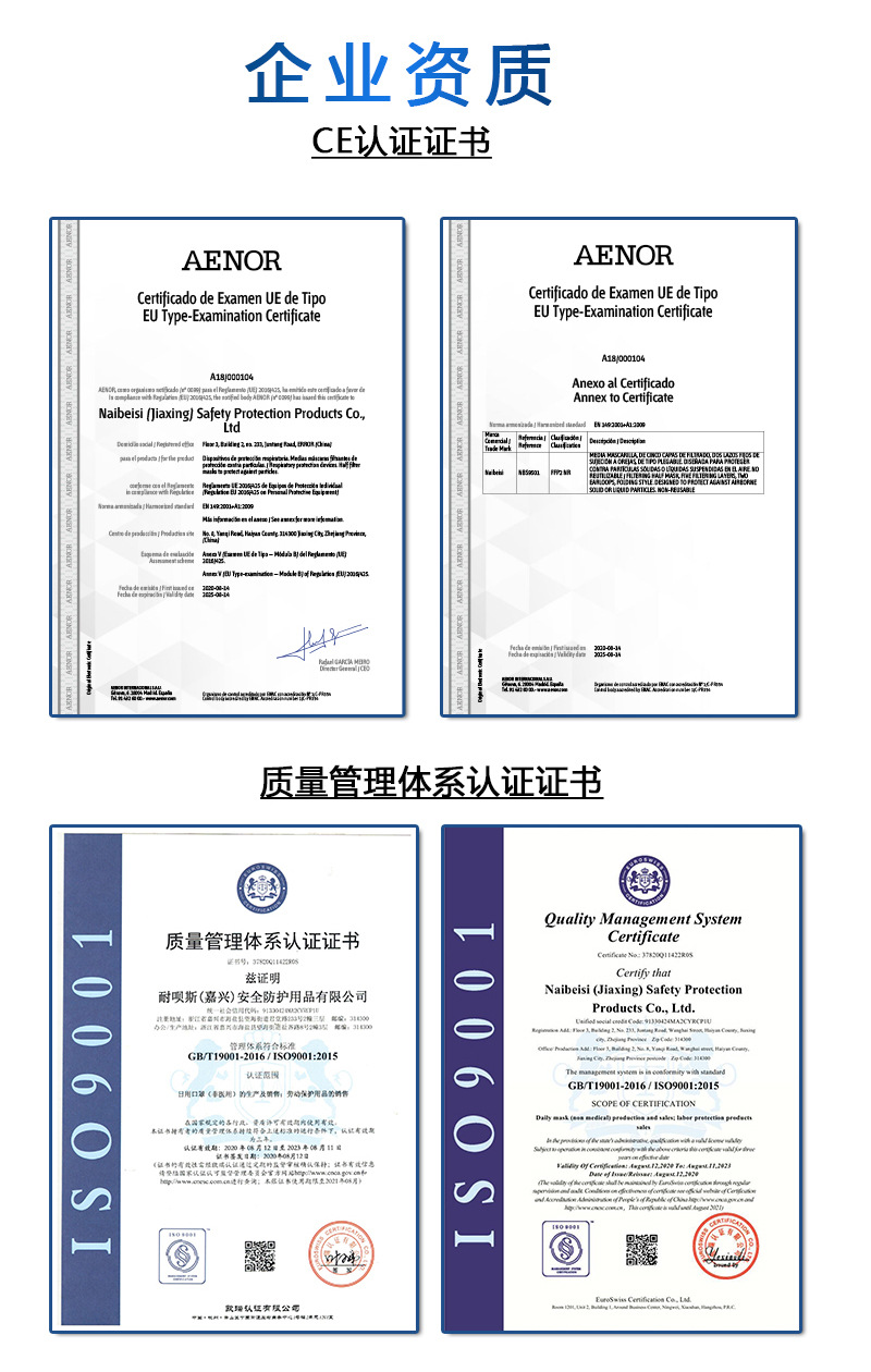 耐呗斯(嘉兴)安全防护用品有限公司坐落于浙江嘉兴海盐县。公司主营全系列劳保用品研发、生产和销售。目前产品线有:呼吸防护类(口罩、呼吸面罩)、听力防护类(耳塞、耳罩、耳塞分配器)、眼部防护类(护目眼镜、眼罩)、身体防护类(防护服)、手部防护(手套)。产品研发方向主要围绕:安全、舒适、便捷、环保、科技、时尚等要素。一直秉承“品质为先、有效经营、持续改进、质量第一、客户满意”的宗旨,通过自身的不断努力、改善、创新,拥有了专业的技术人才和高品质产品,在产品生产中,坚持“更为国人守护安全”的使命。