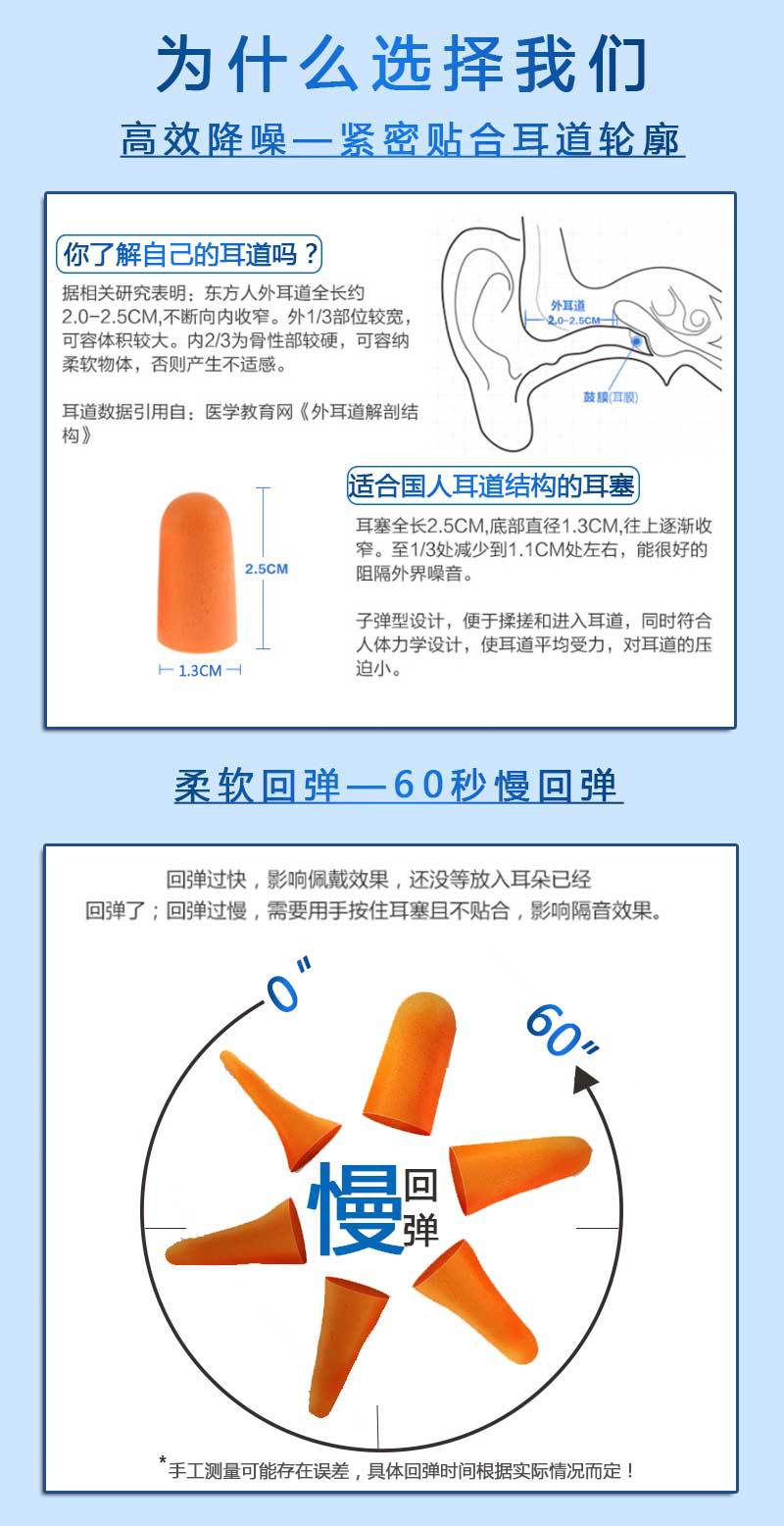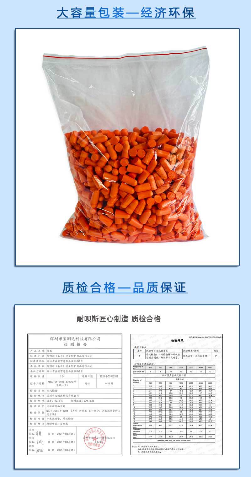 耐呗斯防噪音舒适慢回弹保护听力子弹型无绳散装耳塞NBS3105