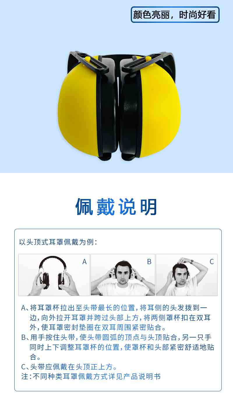 耐呗斯头戴式隔音降噪静音舒适可调节工业基础款耳罩NBS3207
