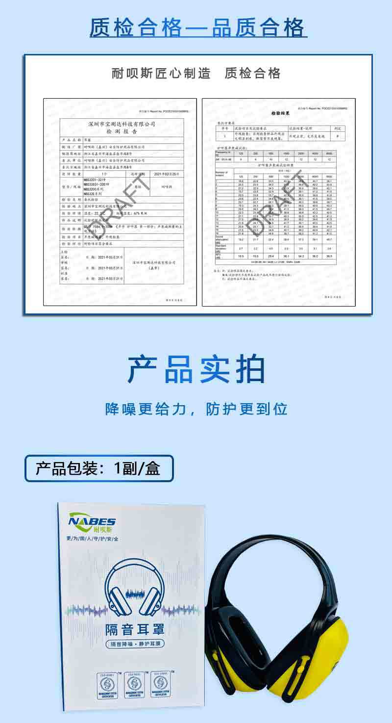 耐呗斯头戴式隔音护耳降噪静音舒适可调节基础款耳罩NBS3205