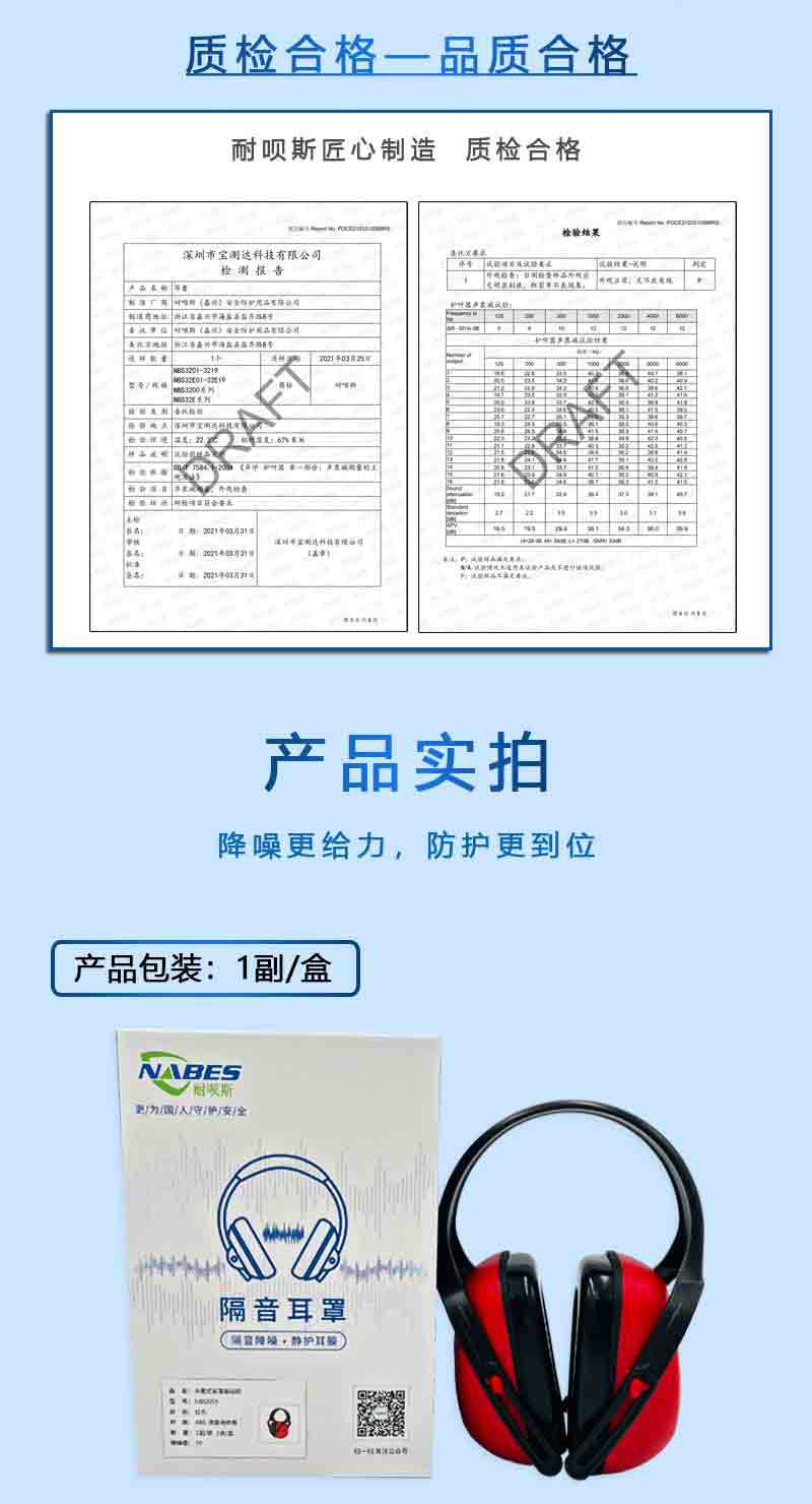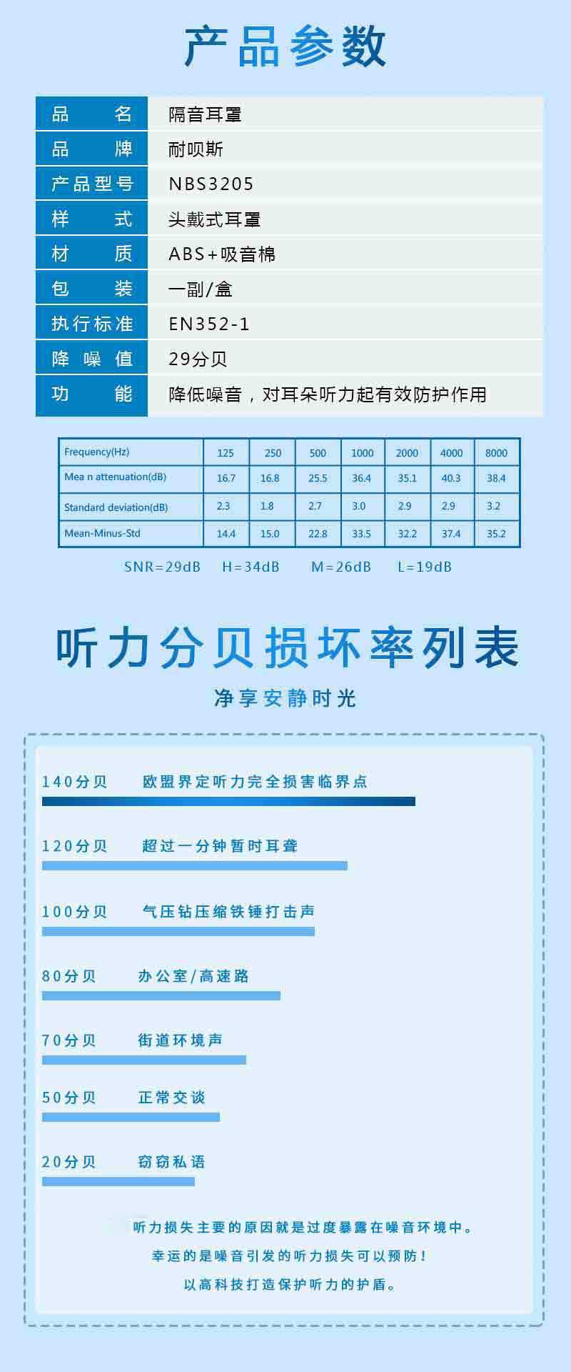 耐呗斯头戴式隔音护耳降噪静音舒适可调节基础款耳罩NBS3205
