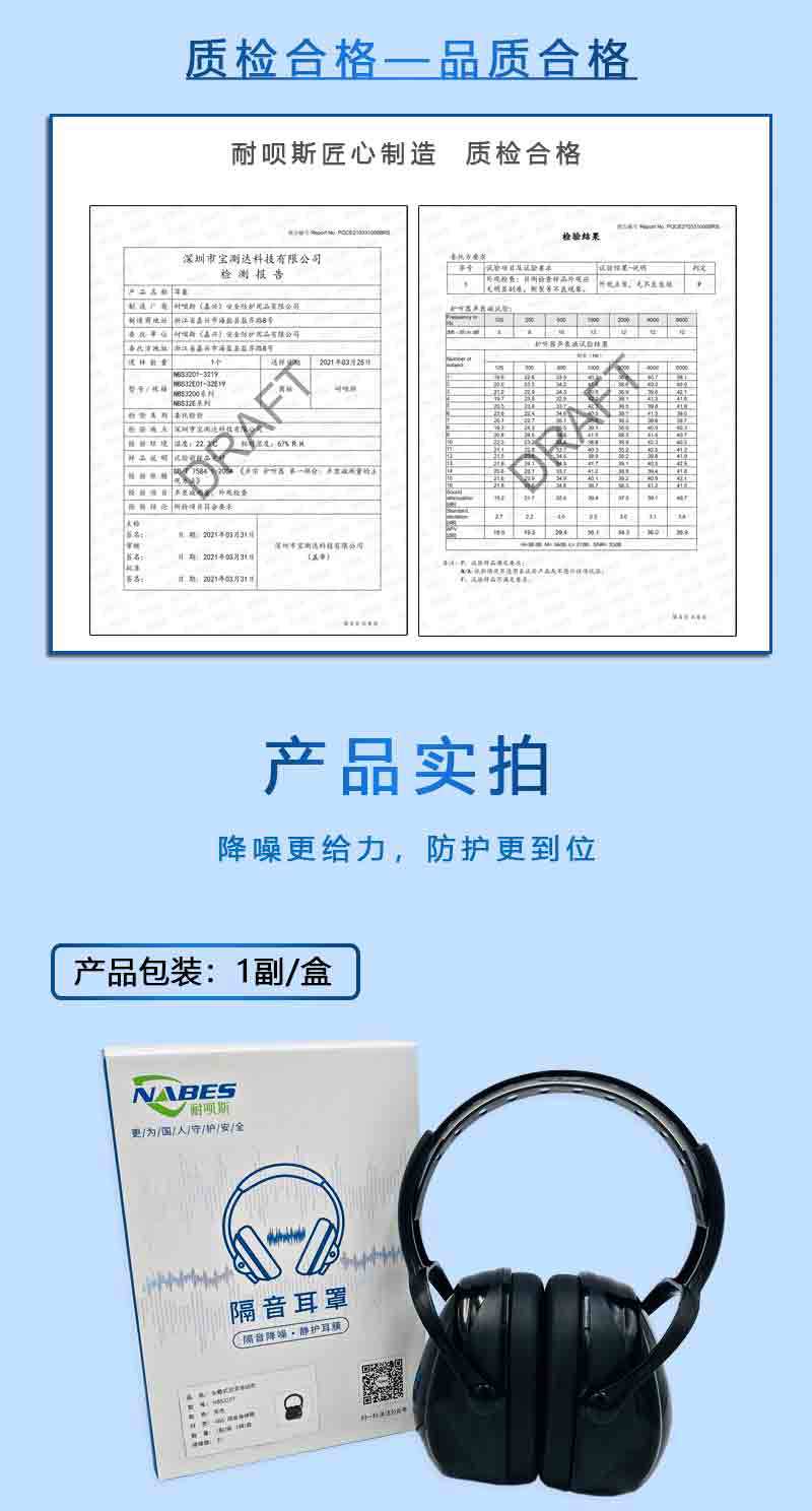 耐呗斯头戴式护耳隔音舒适可调节升级版耳罩NBS32E01