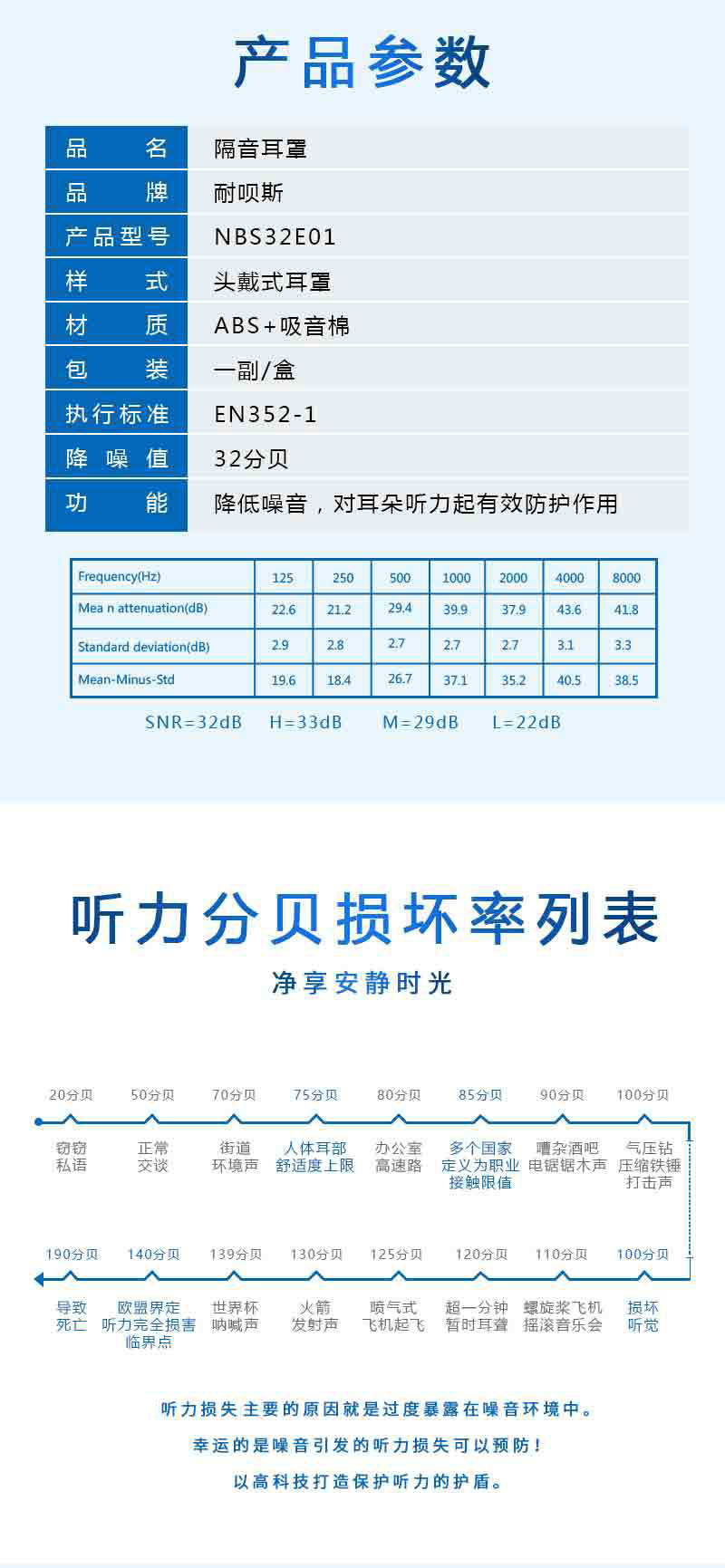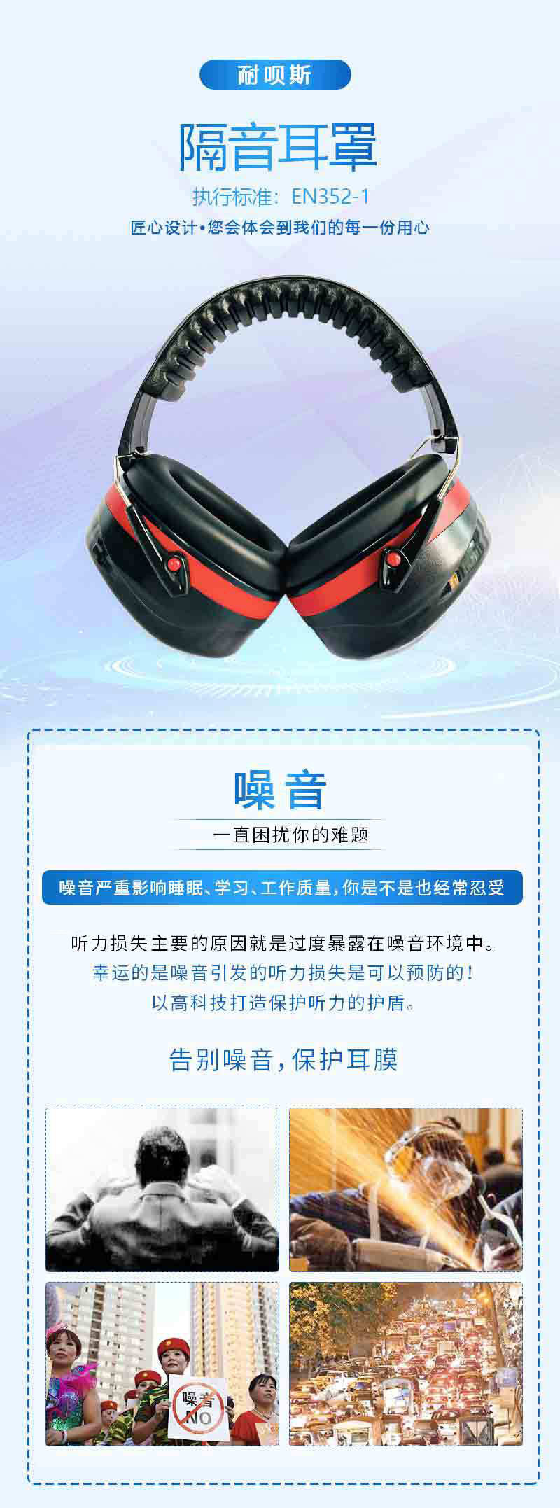 耐呗斯头戴式护耳隔音舒适可调节升级版耳罩NBS32E01