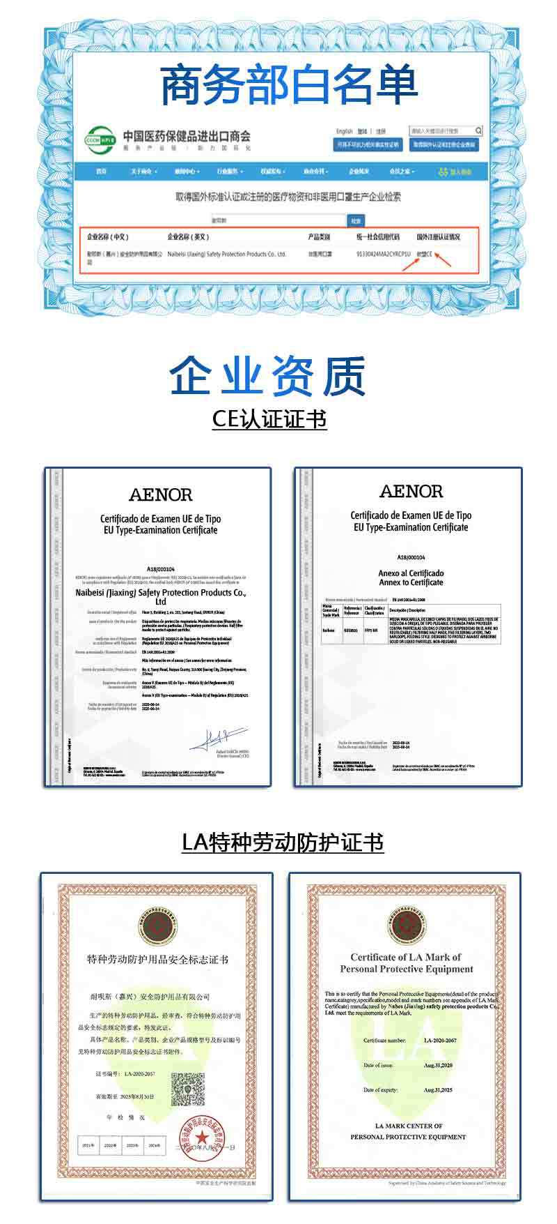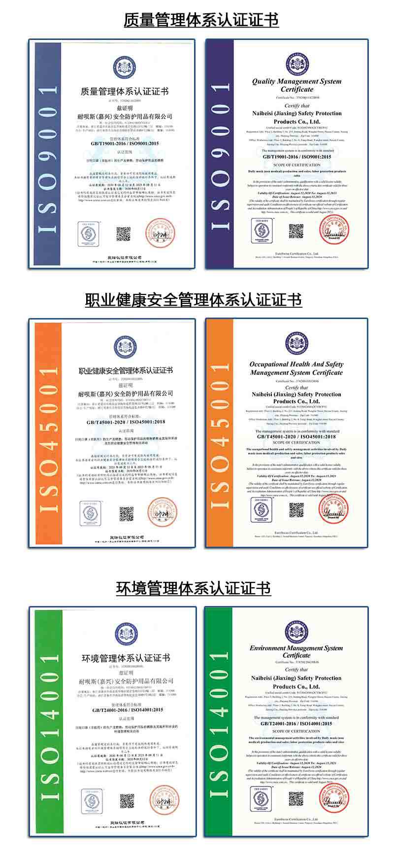 耐呗斯(嘉兴)安全防护用品有限公司坐落于浙江嘉兴海盐县。公司主营全系列劳保用品研发、生产和销售。目前产品线有:呼吸防护类(口罩、呼吸面罩)、听力防护类(耳塞、耳罩、耳塞分配器)、眼部防护类(护目眼镜、眼罩)、身体防护类(防护服)、手部防护(手套)。产品研发方向主要围绕:安全、舒适、便捷、环保、科技、时尚等要素。一直秉承“品质为先、有效经营、持续改进、质量第一、客户满意”的宗旨,通过自身的不断努力、改善、创新,拥有了专业的技术人才和高品质产品,在产品生产中,坚持“更为国人守护安全”的使命。