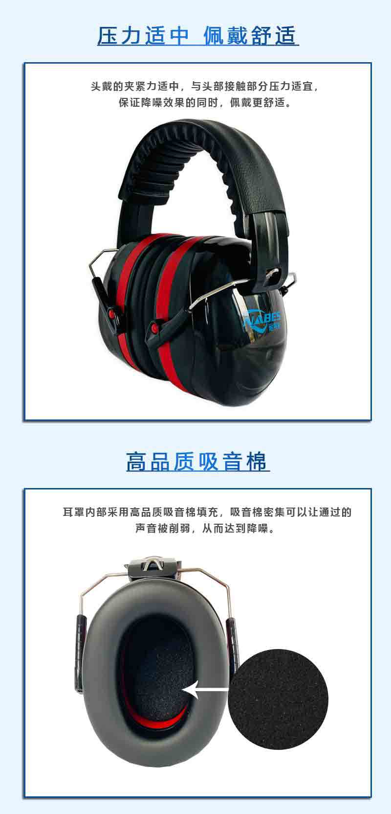 耐呗斯头戴式隔音护耳降噪静音舒适可调节基础款耳罩NBS3205