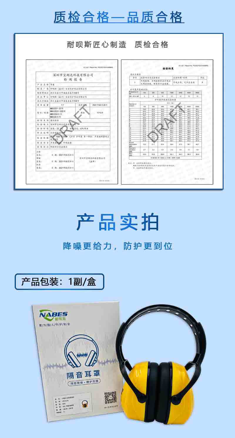 耐呗斯头戴式护耳隔音舒适可调节升级版耳罩NBS32E01