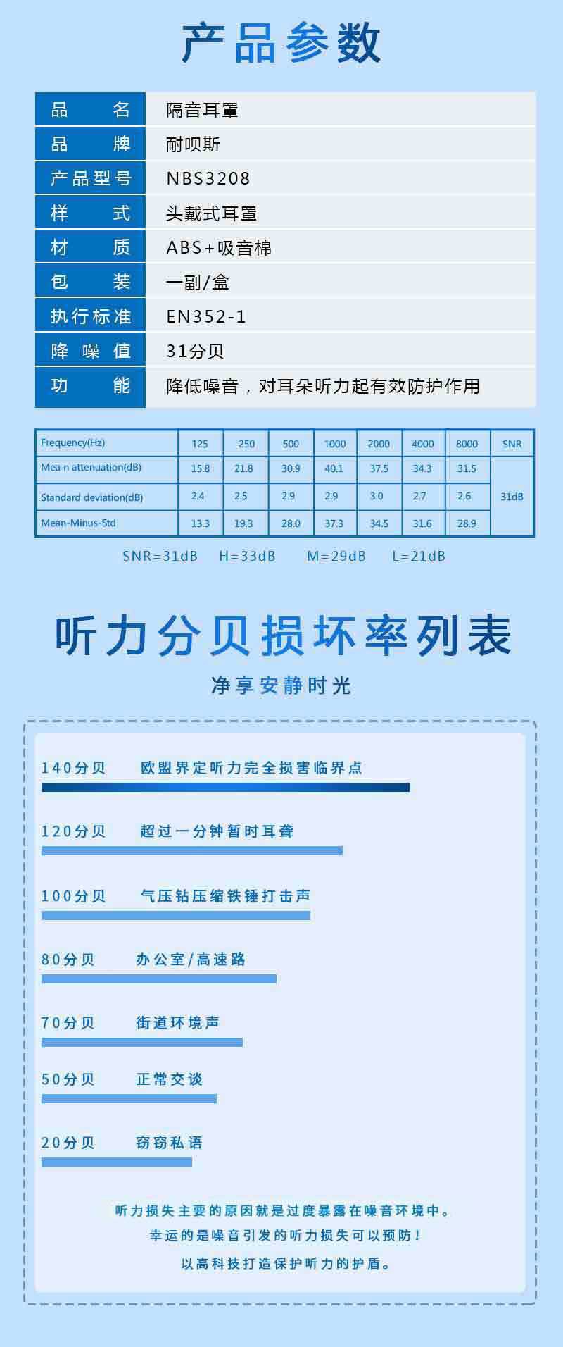 耐呗斯头戴式隔音降噪舒适可调节工业升级版耳罩NBS32E02