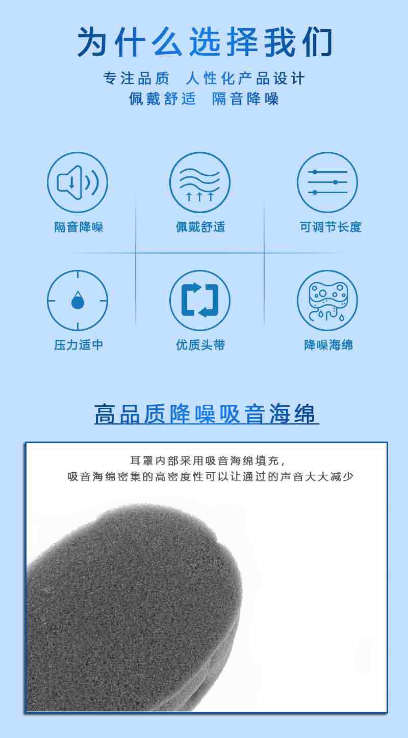 耐呗斯头戴式隔音护耳降噪静音舒适可调节基础款耳罩NBS3205