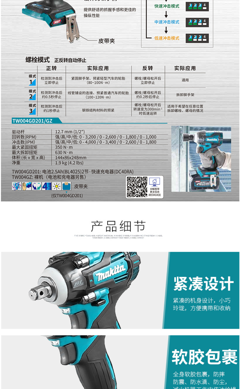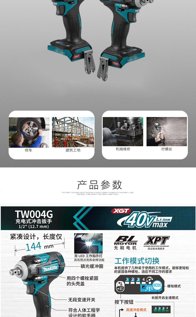 | 工具规格 | 40V 520W |
